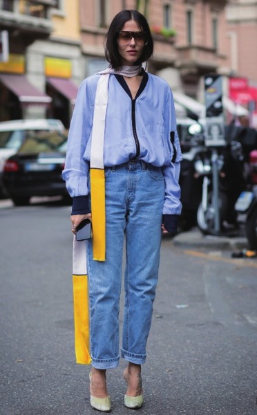 细长款丝巾绝对是衬衫的最佳搭档,飘逸而随意