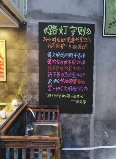 当你迈出了第一步,就会有很多人推动着你走下去,而当你进入这样的生活状态之后,你自己也停不下来了。 有人说,如果街边有这样的一个地方——它能给旅行者一个可以遮身挡雨的屋檐,能给陌路人一个可以交谈寒暄的温暖小窝,能给志同道合者一个可以惺惺相惜的空间……负者歌于途,行者休于此。那该有多好。这样一个理想空间还真的存在,它就栖身在美丽的厦门沙坡尾。全年365天24小时不关门也不关灯,供任何一个过路人使用,更难得的是,它还是个免费空间。熟悉这里的人都知道,“你来或不来,主人不一定在;主人在或不在,你都可以来。” 三个免费空间,无数人的避风港 沙坡尾20号,原本是个破烂的厂房,现在却成了一个乌托邦式的空间。屋子外墙上画着路灯投下的光,暖黄色的灯光向外延展,不分昼夜地“亮”着,屋子24小时都不关门也没人看管,但屋子里却始终窗明几净,井井有条。来到这里的人都会自觉遵守“谁使用,谁收拾”的“潜规则”。 发起人河马邵将其命名为“路灯计划”。而沙坡尾20号的这个共享空间,已经是他构建的第三个空间。另外两个也同时在运转着,三处加起来大约有300平方米。河马邵说,发展到现在的样子是他完全没有预料到的,因为最初他只是为了接待朋友。 河马邵原名邵冬强,来自河南驻马店,也因此被大家亲切地称为“河马邵”。他在福建海军服役了16年,2013年年底才从海军转业,因为特别喜欢厦门的环境和文化,他就留在了厦门生活和发展。因此,经常有战友和朋友来厦门找他,为了接待这些隔三差五出现的访客,河马邵在大学路又租了间三四十平方米的老房子,用自己捡来的旧瓷砖改造房屋,平时用来接待访客。 为了朋友登门时方便些,河马邵就多配了几把钥匙发给他们,后来朋友又带了新的朋友过来,钥匙也就越发越多。开始只是给了十来个人,最后竟然三四百个人都有这里的钥匙,还陆陆续续不断增加,后来索性就不关门了。渐渐地,这个地方从一个私人空间,变成半开放空间,最后成了一个共享空间——即便是陌生人也可以进来歇歇脚,自助泡茶,泡咖啡,离开的时候收拾好就行。后来,就成了大家所熟悉的无人咖啡馆“巢”,但有趣的是,虽然被称为咖啡馆,这里却没有咖啡,更没有咖啡师,所有食物、饮品大家都是自备、自助的。 随着慕名而来的使用者越来越多,爆满的空间让河马邵自己和朋友却无处可用,所以去年年初,河马邵又做出了第二个免费空间“理想家的家”,他召集起朋友,在网上发起了众筹,找地方,做规划,自己当木工水电工,硬是把一个没有屋顶、垃圾环绕、快要倒塌的旧厂房,改造成了大家所看到的温馨小屋。不过,因为是通过众筹的方式建成的,所以只供给有理想的“圈内人”使用,不再对外开放。 连河马邵自己也没想到,短短5个月后,自己又构建出了第三个空间。去年,厦门被超强台风莫兰蒂肆虐的那个夜晚,全城停电,一片漆黑,好像一切都停滞了。“那天半夜,来了一对避雨的母女,说她们的房子进水了还在摇晃,我觉得那天应该很多人在找躲避风雨的地方吧,当时就希望大家都能像这对母女一样能找到地方待着。” 当时望着黑暗中的城市,河马邵想了很多,他觉得人总是需要“黑暗里的一盏灯”,稀松平常,却能够带来某种希望。他联想到自己做了三年的免费共享空间,觉得是不是格局太小了?是不是该做点有意义的事?于是,当机立断,他决定在这座城亮起一盏不熄灭的“灯”——做一个365天24小时都给大家提供遮风避雨的地方,希望它能像深夜的路灯给大家带来温暖和安全感,所以“路灯计划”应运而生。 他还和朋友黄凌寒一起设计了路灯计划的logo,画在了大门口的墙面上:黄色三角形是路灯投射下来的光,彩虹代表希望,一道黑色代表生活中的苦难,黑色区域上写着英文“STREET LAMP”,因为黑暗,所以需要路灯指引方向。 “路灯”常亮,全靠“家人” “路灯计划”其实是河马邵前两个空间的综合体。 这次,他租下了170平方米的超大空间,并把空间分前后区,前区的六七十平方米是24小时向公众开放的,免费提供给过路人、游客,甚至是无家可归者。这里有永不关闭的灯和门、免费自助的休息设施、一片可坐可躺的榻榻米,一个共享的厨房、一面书墙和一面暖墙。 每个到这里的人,都可以自由使用,聊天、泡茶、闲坐、休憩或是打个盹……随喜而聚,随遇而安。但剩下的功能区只有在活动时开放,比如召集大家做做手工,办办展览等。不过,对于在这里举办的活动,河马邵也是免费提供场地,只是自己要进行筛选,有意义的活动才会被邀请到这里来。 很多人来找河马邵,说要支持“路灯计划”,他嘴上都说“好”,却从不跟人谈所谓的“商业项目”,好像保持着恰到好处的“愚钝”。也许就是这种“愚钝”,才一直保护着这里的简单和快乐。 免费的空间自然不挣钱,而且还需要垫付许多的费用。“许多到‘路灯计划’的人,都互称‘家人’,他们自愿维护着这个共享空间。有些人甚至专门请假来打扫维护,让我觉得很多人比自己还用心,而我做空间最初并没有想太多,只是开来玩的,但我慢慢开始觉得,原来大家还都挺需要的,也挺认可的,所以,如果我把空间做差了反而有点辜负大家。” “这些空间真正能存活的原因,其实并不在于资金的问题,而在于来到这里的人是否愿意遵守君子协定,钱反而是比较好解决的。”河马邵认为