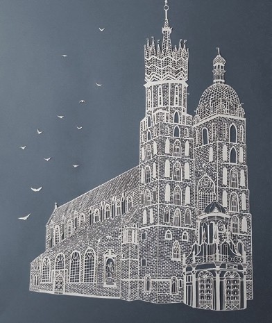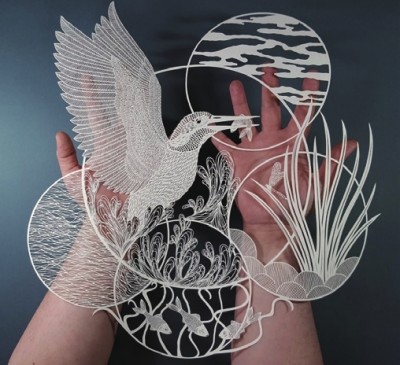 艺术家Pippa Dyrlaga利用传统剪纸技巧创作当代艺术。她的作品包含各种尺寸,大到两米高,小到十厘米大小。随着创作的进行,每一个区域她都会做大量的修改,最终结果往往和最初规划有巨大变化。而且,最后她会把作品翻过来呈现,因此,所有的图片都必须反着画出。