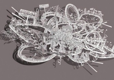 从10岁就开始练习中国书法的华裔女性艺术家Bovey Leede用过山车元素串联起自然与城市中的不同场景,她用X-Acto切刀在中国宣纸上刻剪形成特别的作品。这些作品不但精美,还充满了活力。