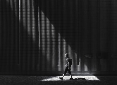 A:人作为城市的建造者同时也是城市中的一部分,人是主宰同时也是“附属品”。我喜欢用镜头捕捉在城市空间中走动的形单影只,此时的人类被作为定格的“活体雕塑”,同时也成为了城市园林景观的一部分。