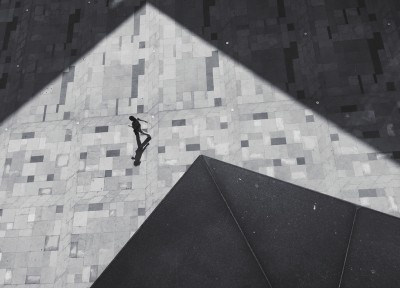 一个非常立体的城市,是很容易找到一些仰视、俯视这种另类视角的拍摄角度的。 简单没有交叉的线条,没有交集的存在,宛如平行线。会不会永远都摩擦不出生活的火花。 绘画是加法,摄影是减法。 在摄影里,一座城你可以拍出来是一座城,也可以选择拍一个过街天桥抑或是一个人。在多元素的构成画面中,减出对主体的认识,减出拍摄者的最基本想法,减出对画面的极致追求,最终剩下的就是作者对摄影的理解。 在“目光之城”众多拍摄城市的作者中,有很多尝试偶尔极简拍摄的,对他们来说这是偶遇。而谢燮坚持用极简的眼光看城市,是对城市的理解简化到了最极致的程度。 请不要过度解读他的图片,色彩、形状、线条和纹理等元素构建出这一幅幅的画面里,每个人最后解读作品的内涵时都会有着不同的看法。因为在谢燮简单的空间中,极简影像就是通过有限的元素组织起无限的想象,所以也请读者保留这份无限的联想的空间。 Qa 谢燮 人文摄影师 Q:平时如何能在城市中选取到这样的构图? A:首先要对所在的城市有足够多的了解,然后在出门前根据当天的天气情况来制订拍摄方案,其实就是有目的性有计划性地去拍摄。例如我喜欢拍城市的线条和光影,今天是晴天的话,那我就可以去一些光影效果比较好的地方拍摄;今天是雨天,那我可以去一些线条感比较强的地方,拍一些雨伞或者倒影之类的。 Q:如何思考人和城市的关系? A:人作为城市的建造者同时也是城市中的一部分,人是主宰同时也是“附属品”。我喜欢用镜头捕捉在城市空间中走动的形单影只,此时的人类被作为定格的“活体雕塑”,同时也成为了城市园林景观的一部分。