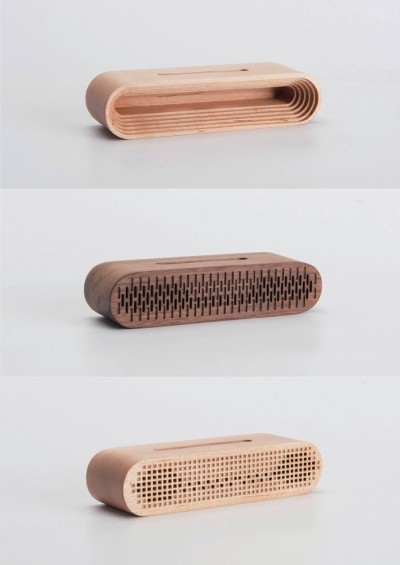 在手机端享受音乐已经成为了一种生活常态,该设计采用了原木物理结构制作了一种声音共鸣腔体,使得手机上播放的音乐在不用电的情况下被物理共鸣腔体无损放大,只要将手机轻松往扩音座里一放,随时随地可以播放音乐及观看视频。