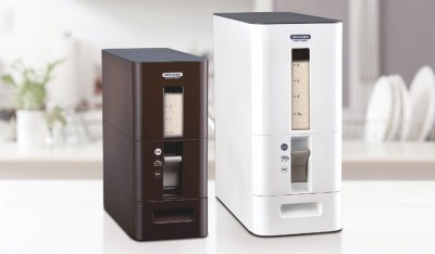日本Asvel阿司倍鹭可计量米箱,密封干燥,防虫防潮,炫酷的造型,放在家里美观又实用。斜坡设计可以让米一粒不剩地到碗里来,计量功能对于煮饭量毫无概念的人真的很方便,只要单击就能自动出米150g左右,做饭用多少米心中有数。