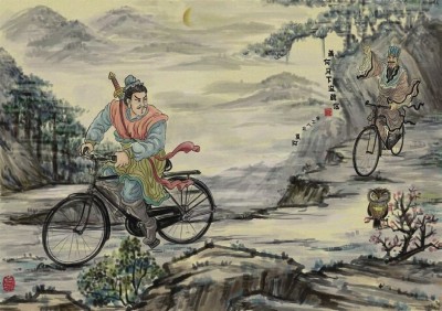 你或许看到过网络上热传的一张﹃似古非古画﹄——《萧何月下追韩信》,月下的萧何与韩信,衣袂飘飘,着冠佩剑,乍看之下并无不妥,但仔细一瞧,他们骑着的并非骏马,而是﹃二八﹄自行车,你追我赶甚是搞笑。 从陌生到喜爱的距离是个谜 围观夏阿的微博会发现,他以往的作品,都是此类画风的清奇作品。比如比着爱心,举着剪刀手在合照的《桃园三结义》;《青梅竹马图》里变成了奥特曼和小怪兽骑着竹马,两小无猜;《八仙过海》里居然是复仇者联盟悉数亮相……甚至,梵高的《星空》变成了古人赏月的《月夜图》。 然而这些画都是清一色的国画风。网友们一边佩服夏阿的脑洞之大,一边吐槽他是“卖萌”,而很多初次见识夏阿作品的人则惊叹,这些画刷新了自己对传统中国画的认知。 “这并不能算是中国画。中国画肯定是要在纸和绢上作画的,并且是要用毛笔画的,而我是在手绘板上绘制的,只是运用了中国画的表现形式和技法,顶多是在模仿中国画。”夏阿对自己的作品做出了清晰的界定,并不希望打擦边球,或是造成误解。或许也是在反驳那些质疑他恶搞传统文化的言论,“我的画不重要,就是好玩,其他什么都没有。我的画何时何地看都可以。如果你有那么几秒乐了,就足够了。” 虽然,自认是“野路子”,但夏阿其实从小就开始学习国画,但他笑说是被妈妈“骗去的”,“幼儿园开始学国画,小时候其实没有什么喜欢不喜欢的概念,她让我去学我就去了,让我误以为自己将来能成为扬州第九怪,但小时候学的那些东西顶多是让你比常人多了解绘画一点而已。”话虽如此,夏阿却因此一路画到了高中,直到大学念了艺术设计专业,学的是平面设计跟装饰艺术,包括漆工艺、雕塑、陶艺等手工艺。因此,大学期间几乎没有碰过绘画,但在毕业后却发现自己仍然最爱画画。 经历了一段时间的迷茫和不确定,2014年,夏阿在朋友的启发下,陆续在网络上发布了“混搭”、“穿越”风格的类国画作品,渐渐聚集了一些人气。 还记得他第一幅相关作品画的是相貌丑陋的钟馗小时候,“我脑子里之前有这种隐隐约约的想法,一直没有付诸行动。而且,最初其实是想画各种人物的小时候,但第一张钟馗发出后,我就觉得不太合适,朋友说你画的这些东西别人也能画,你得画点儿好玩儿的。”于是,夏阿及时调转思路,紧接着知名的《萧何月下追韩信》就应运而生了,这一下子就引起了热烈的反响,也让夏阿顿时开了窍,明白了自己的创作方向。 夏阿说,他每天都会画画,画的都是自己喜欢和想画的内容,只要出了成稿就会发布出来跟大家分享,他不介意别人模仿,但不能容忍盗图商用和完全抄袭。 “好玩第一”的独特画风 每幅作品都体现着天马行空的想象力,不断在拉高粉丝们的期待值,高产的夏阿却从不担心自己“才思枯竭”:“能画的东西永远画不完,怎么会有才思枯竭这种事?如果有画画的人跟你说没灵感了,他就在装。我所认识的画手,从没有过画不出东西来的时候,想画画随时可以画。” 不过,夏阿并没有给自己戴高帽,他给自己的定位只是“绘画从业者”,“画得好的人太多了,我是一个知道自己局限性在哪儿的人。” 除了分享画作,夏阿还时常在微博上评鉴一些古画的真伪,写一些关于中国画常识的文章。 “夏天的夏,阿姨的阿,但不是夏阿姨的简称。目前一个人住南京,不打算搬家。”夏阿的自我介绍通常都是这样的句式和内容,似乎能理解他之所以会有“怀揣魔性的段子手”这个称号的原因了。夏阿自认不是一个幽默的人,说话简单直白,还容易让不熟悉的人不舒服,但或许是因为自己比较喜欢观察,所以能发现生活中许多“好笑的事”,才不时会发挥一下吐槽的功力。夏阿也会通过绘画来表达一些想法,但他却认为,这种表达通常是很无力也很无奈的,“我有些时候是在表达反讽,像是很多画里的情节都是荒谬的,不严肃是我想表达的,因为平时的生活太严肃了。”之所以无奈,是因为他反讽的并不应该是好笑的东西,但大家看到画的反应,却觉得非常好笑,“比如《借东风》里,我故意把诸葛亮画得很不一样,是想表达生活中,一些人会因为‘不合群’而遭到非议。但观者的反应和我想表达的东西是相违背的,这就是无奈之处。” 虽然,夏阿因为“改造古画”而出名,但现在的他更专注于原创作品。偶尔也会借鉴一点古画的元素,但用的方式已经发生了变化,“我的变化可能是外人看不到的,比如一些绘画方式,画石头的方法、染色方法等等,更多的是技巧上的转变。”他还检讨自己以前的画风太外露了,现在希望“收着画”,“以前就像是穿着泳衣的人,之后我希望自己是穿着风衣,但大家依然能看得出我有好身材。”