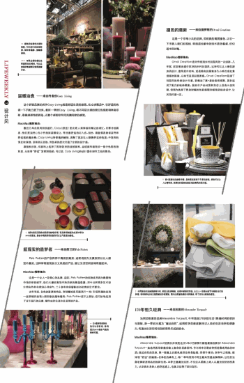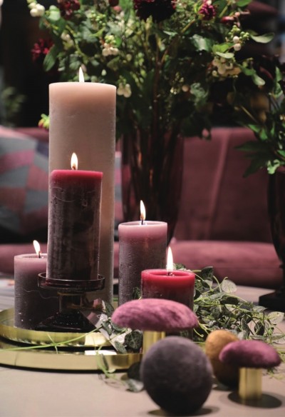 这个新锐品牌的名字Cozy Living就是舒适生活的意思。在众多展品中,它舒适的色调一下子就凸显了出来。最新一季的Cozy Living,将不同层次感的紫红色搭配得淋漓尽致,是餐桌装饰的首选,让整个桌面和空间充满回家的感觉。 MaoMao推荐理由: 最近几年北欧风特别盛行,Cozy(舒适)是北欧人常常挂在嘴边的词汇。在寒冷的国度,他们更加用心在小件的家居摆设上,寻找最舒适的切入点。烛台、靠垫都是给家居带来舒适感的魔法棒。Cozy Living将普通的蜡烛,调制了更加让人眼睛舒适的色度。不饱和的深红和深绿,没有那么张扬,用色彩的层次打造了全新的设计感。 靠垫和沙发,在面料上选择了质地较好的丝绒面料,丝绒面料能吸收一部分色彩的饱和度,从而将“舒适”发挥到极致。可以说,Cozy Living的设计重在细节之处的微变。