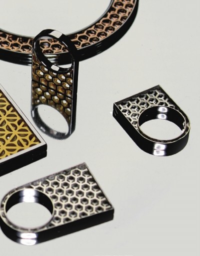 2009年从中央美术学院国际预科项目赴英国格拉斯哥美术学院学习纺织面料专业,2012年考入皇家艺术学院同专业并在2014年硕士毕业。虽然从背景上看,她应该算是地道的织女,但她更喜欢称自己为材料设计师。 在设计的初期,我开始着手研究这些由匠人的双手编织而成的最紧密的支撑结构,将这些带有温度的结构提取出来,并图案化。经过考虑,我觉得首饰是对于我个人情感输出的最佳方式,或者说它们并不是首饰,而是一系列可以重新衡量竹编结构与人之间情感距离的装饰性物体。我将竹编结构融入到能够暗示当代审美的简单几何形体中,强调平面化的展现方式,以一种微妙的形态建立人对竹编结构的观看角度。在德宏,人们用金银去供奉他们坚固的信仰,就像我选择用贵金属去衬托最朴实的竹编图案。”