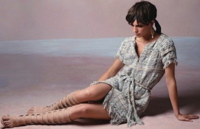 法国女星玛丽恩·瓦斯为某品牌拍摄的一组广告大片曝光,她身穿短裙展示迷人身材,复古发带优雅动人。