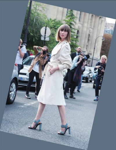 高跟凉鞋为风衣增添了一些轻巧与灵动。