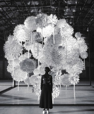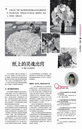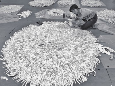 大部分的“灵感”就是视觉经验的输出和知识储备的转化,所以要问出处,可能就是平时看的书、刷的网页、见的人、经历的一切的总和。 志怪之书《山海经》中,提到“玄鸟”有如此叙述:“北海之内,有山,名曰幽都之山。黑水出焉。其上有玄鸟、玄蛇、玄狐蓬尾。”这传说中的神兽,是古之部族商人崇尚的图腾。陈粉丸新作的灵感,竟是出自这活在古籍传说里的“玄鸟”,和以前一样,她仍然用纸张进行创作,只是这一次,为了配合创作的主题,她运用了更多具有金属质感的纸材,只为营造出一种“刚柔并济”的视觉效果。 从二维平面到空间表达 许多人熟悉陈粉丸的纸雕作品,或许是从她的手工书开始的。她的第一本手工书《鸟》,改编自DK系列丛书的《鸟》图鉴,是她还在大学时,选修一门手工书课时的课程作业:“做书是不会改变的一个爱好和输出手段。于我而言,一沓有内容的纸,通过某种方式装订起来,它就可以是一本书了。无论是日常记录,还是费心的创作和表达都无异,其实都是将一个个空间压缩在书页里,难点应该就是如何做出解放想象力的东西来吧。” 后来,她又做了《一夹子游记》和《一盒子游记》,有意思的是,两者都是用手工书的形式,将去香港和苏杭旅游中的种种回忆,以纸艺创作的形式保留了下来:“苏杭之旅比较难忘,因为这趟旅行结识了非常可爱的朋友,是可以一直互相鼓励、互相支持的那种。我把旅途中所得收集起来,回来时,一边整理,一边创作,是非常有意思的过程。” 她对纸艺纸雕的兴趣是从大学时开始的,学习的专业就是书籍装帧艺术。这门听起来有些冷门却很有意思的专业,让她有机会接触到手工书和艺术家手制书,显然,这些创作都与纸张脱不开干系,于是,陈粉丸干脆一头钻进去,逐渐开始了对纸张艺术的探索:“在接触纸艺之前,我创作的思维更多是一种二维平面的表达,一种绘画式的思维方式。而开始纸艺创作后,整个创作思维从二维转向更具空间概念的表达,所以才创作了一些区别于从前的装置作品。” 尊重每一处变化,同时也对此不安 15、16世纪,医学尚未发达,对人本身的研究也远远没有如今这么深入。达芬奇是出生在那个年代中的大家。对解剖学的研究,让他对人体的结构和比例有了更深入的了解,这也是后世很多人认为他能画出巨作的原因。据说,在那个医学并不先进的年代,达芬奇为了研究人类的构造,他从外至内,当研究到最深一层的时候,一个疑问在他的脑海中产生了:灵魂为什么不在?对于当时深信灵魂有实体,并且就藏于人体内的人们来说,这个事实无疑造成了很强的冲击:“这个故事,也引发了我的一些思考,关于灵魂的所在,关于它的形状。” 陈粉丸说,在纸艺纸雕的创作中,常常会利用手术刀代替刻刀,因为其足够锋利,能够雕刻出纸雕中细节的部分。她给自己的其中一件作品取名为《灵魂出窍》,以白色纸张为主色调,这也是陈粉丸制作最久的作品:“我就用手术刀来解剖纸张,创造作品的灵魂。” 生命和人本身,是陈粉丸的纸雕作品中常常出现的元素,用她自己的话来说,这些元素都是她敏感的部分,就如同她自己的身体,尊重每一处变化,却也会因此而感到不安,“我认为‘灵感’是一个很万能的词,其实大部分的'灵感'就是视觉经验的输出和知识储备的转化,所以要问出处,可能就是平时看的书、刷的网页、见的人、经历的一切的总和吧。”陈粉丸说。 Qa 生活周刊×陈粉丸 Q:在进行纸艺纸雕创作的时候,都会用到哪一些工具和用品呢? A:纸材没有什么限制,工具包括各式剪刀、刻刀、牛骨刀、万能胶、黏土胶等。 Q:觉得纸艺纸雕和其他艺术形式或者材质最大的区别、吸引你的点在哪里? A:纸的触感和可塑性是吸引我的,加上它于我而言随手可得,也就更加顺理成章了。 Q:纸艺纸雕在你生活中占有什么样的地位,会怎样来安排自己的创作时间? A:纸艺现在是我的身份和工作,我就和其他热爱自己工作的人一样经营着这一切。当然作为不用上班可是要工作的人来说,时间还是相对自由的,我一般强力工作一段时间,再去放肆玩一阵。 Q:自己理想中的关于纸的艺术,是什么样的状态? A:永远不会变的是变化,我希望我的创作是变幻莫测的状态。