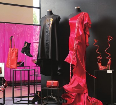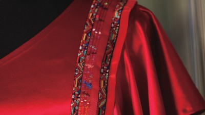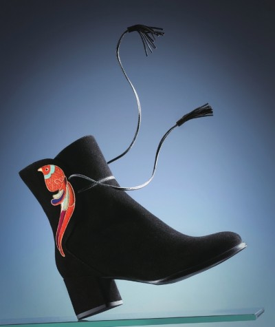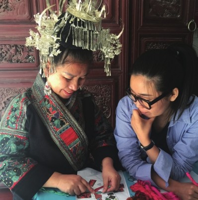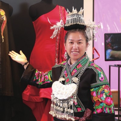 2017年PACC苗绣“非遗”跨界创新设计成果在上海设计周闪亮发布。《炫秀》服饰系列和《幸福鸟》服饰系列以红与黑的色调,一个热烈奔放,一个沉稳大气,结合苗族古老针法中的数纱绣和织锦绣,千针万线密密绣,时尚中带有民族风,简约中尽显匠人魂。 在上海大学承办的2016文化部/教育部“非遗”传承人群研修研习培训计划“织绣研修班”上,杨再美,这位性格爽朗大气的苗绣传承人与我们结下不解之缘。她对于苗绣的感情和热爱来自于家庭,她的奶奶王安丽是苗绣和剪纸的国家级“非遗”传承人,在乔晓光主编的《中国民间剪纸天才传承者的生活和艺术》中记载着王安丽的故事。其母亲欧光英同时是苗绣的重要传承人,从小对苗绣的耳濡目染形成了杨再美的娴熟针法和独特配色风格。 2016年《桃花源》缂丝跨界服饰创作获得社会高度关注之后,2017年春天我们再次携手中国原创设计鞋履品牌SHEME和海派旗袍设计师苗海燕,推进新一轮苗绣的跨界创新。在SHEME品牌创意总监周爱华老师的牵头带领下,跨界团队多次深入黔东南大山深处的苗寨,感受苗族文化,挖掘苗绣技艺之美。 这次苗绣跨界创新的目标是让苗绣古老针法之美走进当代时尚生活。在黔东南考察中我们发现了一种老绣片上的类似织锦纹样的绣法,名为“织锦绣”,通过经纬线交织的基本原理可以变换出多种纹样,包括万字纹、甲骨纹、叶子纹、鱼骨纹、菠萝纹等,抽象几何的图案变化万千,现在会这种针法的妇女几乎已经绝迹。杨再美通过研究拆解老绣片,不断琢磨尝试复原,终于掌握了织锦绣针法的古老技艺。 看到这样曲折奋斗的故事,设计师们有感而发,创作了这组《幸福鸟》苗绣跨界创新作品。 幸福鸟的核心图形来源于苗族的凤凰传说,凤凰象征着苗族女性独立和拼搏的精神。《幸福鸟》包括一双黑色植绒短靴和毛呢面料黑色小礼服,上面的幸福鸟身体圆润饱满,长长的尾巴轻盈飘逸,分别运用了织锦绣和破线绣技艺,洋溢着动感的生命力。希望《幸福鸟》苗绣跨界创新作品能让古老稀有且变化丰富的苗绣“织锦绣”针法代代相传,如同一只浴火重生的幸福鸟越飞越高。 在苗寨大山里的考察中,杨再美带着设计师们来到施洞苗家绣娘吴必花家里感受苗族刺绣之美。吴必花擅长数纱绣,这是一种常见于苗族服饰中的条带纹样的针法,具有独特的经纬线交织的韵律感。绣娘通过数土布上纱眼的数量,运用类似“经三纬四”的规律来形成条带上倾斜的纹样,神秘古老的几何图形、生动淳朴的生灵图形,都出现在数纱绣技艺中,有时也被称为挑绣。 数纱绣结合了破线绣中对于分线和皂角出线的技法,因此纹样微微凸起,富有光泽,类似浅浮雕。在镶嵌运用于皮革面料时,SH EME设计师单琪采用了施华洛世奇烫钻工艺和闪烁片的结合应用,为数纱绣增加了闪闪亮亮的时尚感。 于是《炫秀》服饰系列孕育而生,包括一双高级定制的罗马凉靴、五双系列凉鞋、两款定制手包,以及海派旗袍设计师苗海燕的斜肩礼服。《炫秀》以热情的红色为主色调,加上小面积紫色、米色、宝蓝和粉绿,结合古老针法中的韵律感,呈现出吉祥喜庆中的活泼跳跃感,让苗绣以最美的姿态行走于天地万物之中。 作者:章莉莉 公共艺术博士,上海大学上海美术学院副教授 上海公共艺术协同创新中心(PACC)运营总监 致力于推动“非遗”手工艺、现代设计、当代艺术之间的跨界创新