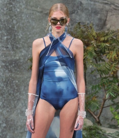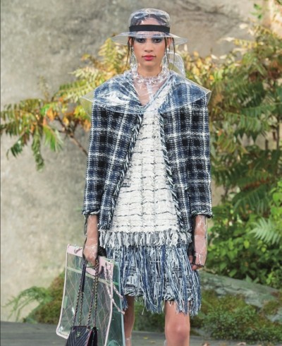 用车祸现场来形容这一季的Chanel秀场,都算是笔下留情。比起上一季的宇宙飞船,真的是天壤之别,开秀之时火箭伴着烟雾缓缓上升,那种气势磅礴的感觉也消失殆尽,留下的只有那一堆莫名其妙的透明塑料帽、塑料靴、还有无袖的花呢外套,以及蓝黑色的眼影和大红唇所组成的妆容。号称要打造上世纪60年代的太空时代,可是这未来感真的是令人捉摸不透。