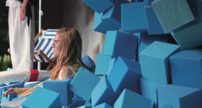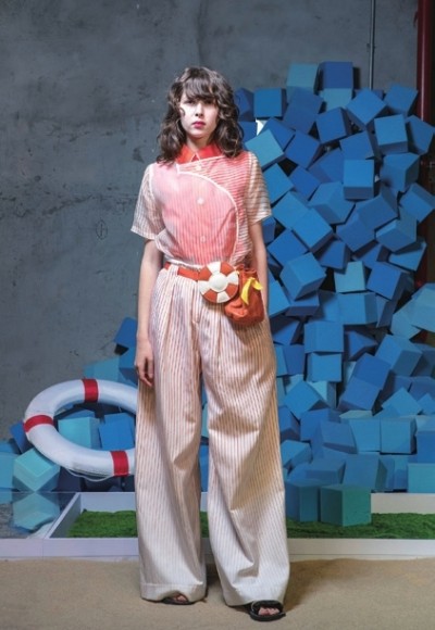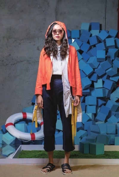 明黄、蓝、橙、白成为了这一季的主色调,这一系列服装重现了夏日原色,又任其被海水打湿,在海盐和太阳光线的作用下渐变、褪色。Steventai团队还在丝印工作室手工印制了经典的海魂衫条纹,好像下一秒就回到冲浪的海边;刺绣深入口袋,绵延至袖里缝间,在衣领上卷起浪花,好似少女心思般的飘带随风飞动……