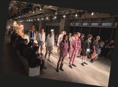由Haoran与Siying创立的来自纽约的品牌Private Policy,将纽约人的生活“搬”到了秀场中。2018春夏系列的主题是“小玩意儿”,像是便利店会给的袋子,以及美国城市和乡村中都到处可见的印第安navajo图案,来自Chinatown的图案,都在这一次的秀场中有所体现。 而PRONOUNCE的时装秀像是艺术画廊里的表演,将许多模特以及整个氛围放大化,给人到画廊观看展览的感觉。 这一次PRONOUNCE还继续使用了素人、模特、练格斗的小孩,以及打咏春拳的“小金城武”,有各种有意思的人群参与到PRONOUNCE的演出中,而模特们则都是两两一组静置在工业推车上,他们被工作人员用推车推来推去代替了走台步。 有趣的是,PRONOUNCE并不是唯一一个在show上出现手推车的,它同样出现在了潮牌C.R.Z的秀场上。C.R.Z以“EXPRESS”(快递)为设计概念,把日益发展的快递行业与时尚链接,产生了一种莫名的诙谐与时尚感。