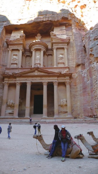 约旦最缺的是水,最不缺的是大太阳。在一种蒸腾的状态下,让这些古老的景色看起来更多了一丝奇幻的色彩。 七山之城——安曼 顾名思义,风光旖旎的山城约旦首都安曼是建在七座山头之上的城市。约旦国家规定,房屋的外墙必须是土黄色和土白色的,所以,当我们站在城堡山上,远远望去密密麻麻的一片灰白、灰黄色,十分壮观。在石头山上一砖一石地建房子,洋洋洒洒一大片,可想而之,人的生存能力是多么的大。所以,安曼也被称为白色之城。随着人口的增加,现在的安曼已不仅是七山之城,而是二十四山之城。出门就得爬坡,所以,每家每户基本都有车。安曼人办什么事的节奏都是慢慢的,早上十点多钟上班,下午四点就下班了。而唯独开车,哪怕后面的车排成长龙,喇叭声响成一片,他只要做一个手势让你等一等,你顿时就像一只泄了气的皮球——没气了。 安曼还算繁华,四处遍布几千年的古迹,有古罗马、巴比伦、亚述、拜占庭、 波斯。硕大的古罗马露天剧场,就在安曼的市中心,完好无损,静静地诉说着金戈铁马、销魂摄魄的年代,你方唱罢我登场的历史。如果把安曼比作一个女人,那她就是一个有故事的女人,沧桑感十足,同时又贴上现代时尚的标签,瓦蓝天空没有一丝云彩,纯静得犹如安曼人,也热烈得如安曼人。 约旦在阿拉伯世界里是一个有限度开放的国度,女人虽然不用面纱把自己包裹起来,但对穿着还是有她们的讲究和要求的。看得出来,约旦的国民都非常爱戴自己的国王,无论在宾馆、机场还是家里,都挂有国王的画像,说起他们的国王,他们脸上的自豪感油然而生。 虽说是一个国民的大部分生活必需品靠进口的国家,但在某种程度上说,在约旦的游客比在以色列吃得好,他们做的皮搭饼也比以色列好吃,我们这一路就是吃这个皮搭饼。这是一种像“口袋”一样的面包,因为有了这个“口袋”,你就可往里填充上各种菜肴,因是老面发酵的,吃起来很有韧性,这就是他们的主食。 玫瑰之城——佩特拉 这是一座由纳巴泰人建在撒哈拉山脉中心,有几千年历史的石头城,它是古代连接两河流域和埃及的主要贸易路线,它的兴盛和消亡并没有明确的记载。公元前一世纪,它成为纳巴泰帝国的首都,香料贸易开始繁荣起来。之后,被罗马帝国吞并,罗马人特有的廊柱式建筑在这里时有出现。公元四世纪的大地震加上海运的出现,它才开始没落。除了当地的贝都因人,其它人都抛弃了这座古城。直到1812年,一个瑞士的探险家,把自己打扮成阿拉伯人骗取了贝都因人的信任,当地人带他找到了“失落的古城”。之后,佩特拉华丽的身影才为世人知晓。现在它是约旦国的国宝之一,1985年被联合国教科文组织列为世界遗产。2007年在葡萄牙里斯本,被宣布为世界新七大奇迹之一。它还是电影《夺宝奇兵》《变形金钢2》的外景拍摄地。它的全自然的风貌,吸引了全世界人的目光。 这座美丽的城池,完全是在石头上开凿出来的,这种砂岩随着太阳照射的不同时间会呈现出不同的红色,使人着迷。游览穿越时空的佩特拉真是一个体力活——从头到尾一共7公里,来回最少15公里。进门最宽处只有7米,最窄只有2米的西克峡谷也被称为蛇道,两边峭壁高不可测,人行走在下面显得十分渺小,但易守难攻真是纳巴泰人的大智慧。 约旦最缺的是水,最不缺的是大太阳,明晃晃的大太阳把一条砂石路晒得冒烟。当然,你想省体力也可雇佣贝都因人的马车、骆驼和小毛驴,我们怕上去了下不来,硬是靠两条腿在砂石路上想象着古人的艰辛和智慧,一步一步丈量着这条古道。突然在古道的尽头,一个依山雕凿的巨大的罗马式殿堂卡兹纳神殿,矗立在你的面前,你一路的疲劳顿时烟消云散,震憾、惊奇一起袭来。卡兹纳神殿意为“金库”,传说里面藏有历代佩特拉国王的宝藏。 穿过卡兹纳神殿前面的山谷,有古罗马剧场的遗迹,剧场后面是一片开阔地,城市依山而建,有寺院、宫殿、浴室、住宅且悬崖绝壁环抱,蔚为壮观,而历史上创造这一辉煌的纳巴泰人也谜一般地消失,无从考证。 不死人的海——死海 说不死是人在死海里不死,而不是死海不死。这句话看起来很拗口,说白了,其实就是死海每年以一公尺的速度在下降,一百年后死海就不复存在了。死海的源头是约旦河,但由于以色列和约旦大量的生活用水和灌溉,流入死海的水几乎没有,逐渐成为一条无源之海,而且,那地区每年的降雨量小到可以忽略不计,酷热太阳的巨大蒸发,死海想不死也难。 死海地处约旦和以色列的交界,也就是说约旦死海的对面就是以色列。它是世界上最低的湖泊,湖面海拔负422米,有世界肚脐之称。死海还是最深的咸水湖,最深处有380米,也是世界上盐分居第三位的水体,它的含盐量为一般海水的10倍。 俯看死海,形似一条双尾鱼,在阳光的照射下,一动不动的水面像一面镜子,水中没有任何生物,只有细菌和绿藻,连岸边也很少有除了水草之外的植物,由于蒸发的原因,湖面上常常雾气腾腾,且它不与其他河流大洋相连,所以死海没有潮汐。 到死海之前,把在死海里的漂浮想象得美妙无比,被导游介绍死海漂浮的注意事项吓得不轻,首先不能像游泳那样跳进去,五官进水你就惨了,必须马上用淡水冲洗,如果再喝上一口,那你的胃犹如翻江倒海要痛上好几天,最好穿上袜子下去,小碎石和盐的颗粒会划伤你的脚,那时的海水就像在你的伤口上撒盐,痛疼无