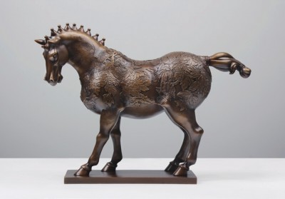 花开时节压百芳,国色天香万花王,立马尊前无双艳,富贵荣华第一香。作品将花开富贵的美好愿景直接以马和花两种元素来表达,给人直观的视觉冲击和眼前一亮的感觉。