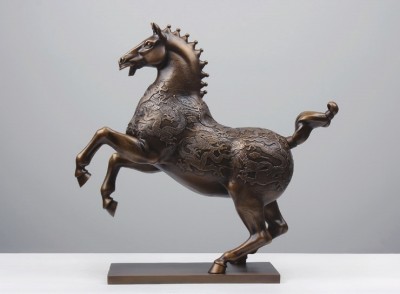 比起静态的《花开富贵》,动态的马身配合龙纹,更有一飞冲天的韵律感,昂扬的马蹄和飞扬的马尾,使得整个作品动感十足。