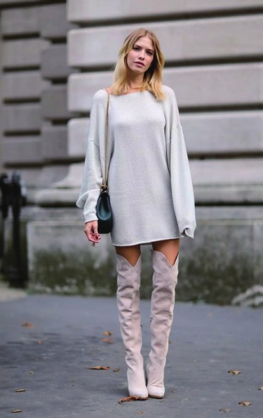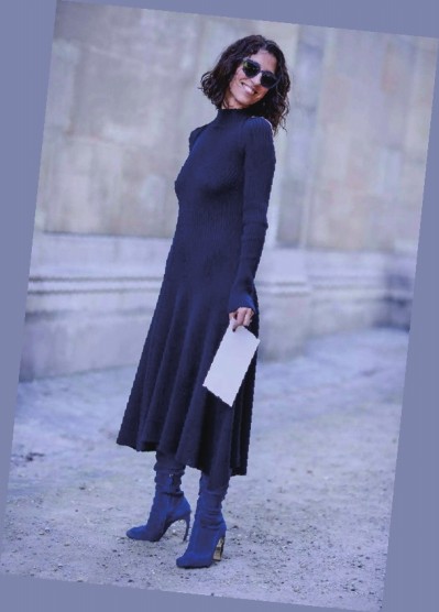 长靴与毛衣裙绝对是拉长身材比例的绝配