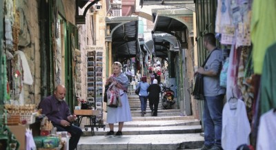 当年欧洲移民和返乡的犹太人带来德国包豪斯风格的建筑:方正平顶如火柴盒式样,墙多窗小,外表为白色或混凝土色,远眺特拉维夫,它就像一座白城,安静详和。我们穿梭在大街小巷里,流连忘返。导游告诉我们,在商店的招牌上,希伯来语在上面,阿拉伯语在下面的,这是犹太人的商店;反之,阿拉伯语在上面,希伯来语在下面的,这是阿拉伯人商店。