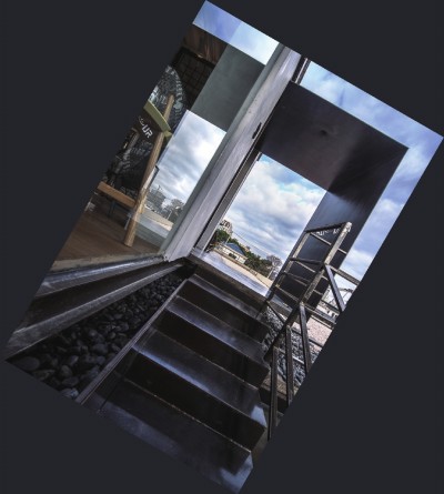 这块市口不佳的位置,正对黄浦江,经过重新设计,反而让办公室在这个夹角空间里生发出了无限创意。经本哲建筑总设计师蒋华健妙手回春,穿过二楼的公共过道,途经办公室时,有一块视野极好的室外露台,正好位于南浦大桥下。天气晴好时,你可以站在露台上,面向黄浦江,聆听两岸徐徐晚风,好不惬意。