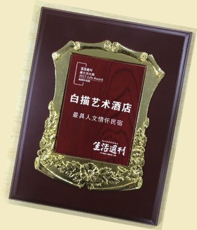 感谢《生活周刊》颁予我们这个奖项。的确,白描艺术酒店是一家文化气氛特别浓的艺术生活方式民宿,我们经常把别人眼中的“废品”变成一件件独一无二的艺术品,民宿里到处都是手作的痕迹,无论是从山上捡回来的枯枝还是用废弃的木料做的天花吊顶,一切物品搭配起来都毫无违和感,让一切都回归物体本身,发散出与众不同的美。我们希望可以把这份质朴、简单、美好的生活方式分享给每一位朋友。