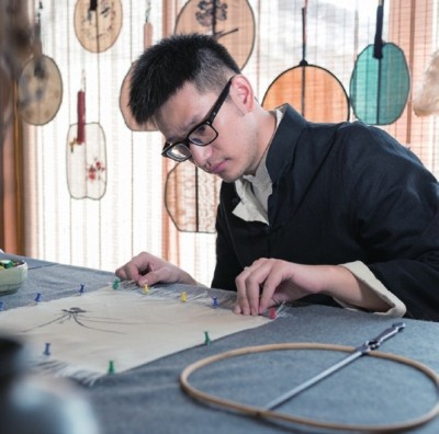 那个洗尽铅华,卸下浮躁的八五后团扇匠人李晶,甘愿选择一种淡然的生活,将中国古代传统文化中的团扇技艺发扬到极致。他的坚守和创新,也让人们看到了中国新一代匠人的理想和愿景。在李晶眼中,传统不是高高在上的阳春白雪,现代审美也不是洪水猛兽。取得两者之间的平衡,才是关键。 2017年,对李晶来说,是韬光养晦、厚积薄发的一年。经过多年寻访老手艺,他自己的团扇技艺变得更加精准纯熟。团扇似乎自古就与美人脱不开关系,一柄半遮面的团扇,道尽了东方女子的含蓄之美。他在团扇的制作工艺上,进行了创新。就现在团扇的造型而言,以圆似明月的居多,但其他形状的也不少,如六角形、八角形、瓜棱形、蕉叶形、梧桐叶形等等,其中海棠形、马蹄形、梅花形,是除圆形之外较常见的。扇面上,李晶偏爱缂丝,也会用绫罗绸缎、宋锦等丝织品,纨素的扇面上不仅可以绘画,还能刺绣、缂丝、抽纱。扇框与扇架,材质种类繁多,竹木牙角皆可。当下用竹子多一些,罗汉、湘妃、紫竹、梅鹿、凤眼,都是精挑细选的好料。扇坠配以回龙须作尾的流苏,或是看上去更简练些的多宝串。 一把团扇的诞生,除了好料,更离不开细致的工艺。藤编,大漆,撒金漆,螺钿,剔红,雕刻……但凡传统家具上用到的工艺也均能在团扇上一一应用。 而这一年,李晶也开始在胸针吊坠等首饰上做文章,用团扇的传统工艺技艺去创作更多载体上的工艺品。“之前我曾将一些珠宝镶嵌在团扇上,很多朋友觉得很漂亮,能做成胸针吊坠该多好。所以我最近就在设计这个机关,能把珠宝从团扇上取下来,作为吊坠平时佩戴,不戴的时候可以把它再镶回团扇上作为配件。可能我自己性格就是如此,喜欢做一些跟别人不一样的、奇奇怪怪的东西。但无论做什么样的尝试,我想要体现的依然是中国的传统文化之美,这一点我坚决不会改变。” 李晶知道,对生活细致用心的观察,会给自己的作品带来更多帮助。而最重要的前提就是,你对自己的这份事业,对自己正在做的这件事需要充满热情。 Qa 生活周刊×李晶 Q:2017年最大的收获是什么? A:2017年开始尝试制作首饰,算是进步比较大的。自己花费大量精力尝试的一些作品,总体还是比较满意的。 Q:如果可以选择,2018年想要有什么样的改变? A:2018年,也没有特别大的想法,就是不太希望有太大程度的改变,希望能在2017年的基础上有所成长有所进步,但是这些都是点滴而来的进步,也没有希望一定是那种翻天覆地的变化。