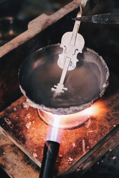成不成功不在于一年卖出几百把勺子,如果因此认识了几百个人,知道了几百个故事,这不是更酷一点吗? 中勘助的记忆里,有一把银汤匙,这把汤匙久久地藏在小盒子里,也深深埋在他的脑海里:“有一天,我费尽千辛万苦,终于成功地拉开那个抽屉。我很高兴地把抽屉里的东西全部倒在榻榻米上,发现有风镇、有印笼的吊饰等,其中有一只银汤匙,不知为何我就是想占为己有,于是马上拿着它跑去央求母亲:‘这个银汤匙给我,好不好?’母亲戴着眼镜正在茶间缝缝补补,露出有些意外的表情说:‘那你要好好保存这支银汤匙。’出乎我的意料,母亲轻易就把银汤匙给了我,让我在开心的同时,也觉得有些泄气。原本我家从神田搬到山手时,那个抽屉就坏掉拉不开了,所以连母亲都忘记那支有一段故事的银汤匙。于是,母亲一边拿着针线工作,一边把银汤匙的由来说给我听。”很多故事就是从一个细节开始的,感动很多日本少年的中勘助故事的由头是一把银汤匙,而对中国八零后路小五来说,做金工的起点是定制一把特殊的勺子。 把时光打磨成想要的样子 路小五“转行”做勺子有一段时间了。第一把勺子,还是工作室刚刚成立的时候,只想着要做金工,却没想到要聚焦在勺子上。后来,反而是为一个朋友定制结婚纪念礼物的时候,找到了灵感,从此就一入“勺坑”深似海。 所有人都在问小五同一个问题:一个做商业摄影的,怎么突然去做了手工?初期不如摄影赚钱也就算了,还是做勺子这么一个小众的门类。小五对这个问题的看法,仍然没有改变,他从来都不觉得,自己是在“跨界”做另一个行业。因为,两者之间有一个很重要的共通点——时间:“我没觉得自己是一个完全摒弃曾经的人,只是一直在做自己认为酷,或是让自己变得更好的事。我没觉得跨界的原因,就在于‘时间’。时间的价值是一样的,只不过,摄影的时候,是记录时光,把时间定格下来给你看。现在,是一遍一遍打磨时间,把时光打磨成想要的样子,呈现出来给你看。” 一个有生活仪式感、热爱生活的人,对时间一定有敬畏感。珍惜时光,才会不厌其烦地重复着一件一件别人认为多余的事情。做勺子是个花时间的手艺活儿,锯切、退火、焊接、去杂质、打磨抛光……工序六七道,光是打磨的步骤,就要用到数种粗细程度不同的砂纸,这也就让这门手艺,更具有仪式感:“刚入此行的时候,你看到别人的作品,就会觉得‘哇!好牛!’现在你就会知道,这是时间的力量。你在上面可以看到一遍一遍地打磨、用心思的痕迹。甚至你把这勺子传递给你的朋友,他也会知道,你在为他挑选这份礼物的时候,有情感的含义。所以,我们觉得,这些东西是有温度的,因为在这个物件上,倾注了时间和期盼。” 用金工技艺做成一把勺子,最快也要七八个小时,一般在两天左右,之前做过的一套星座系列的勺子,可以拆分,加上设计创意的时间,重复做了两三个月。重点在于重复,反复地打造、雕磨、制作,在小五看来,难点在于创造力和执行力,剩下的就是熟能生巧的问题:“总有想法蹦出来,支撑着我重复去做可能相同的东西,或创新的东西。有时忽然有个想法,想去实践,但能不能抬起屁股,坐到金工台前去实现,是另一回事。一般从事此行业的人,或是金工爱好者,只要沾上手了,不把这东西完成,是很难受的。最难的是,每一天,你兴许都要做重复劳动的时候,你有没有勇气,坐到那儿去做。” 这不是更酷一点吗? 勺子从诞生以来,多数时候都作为一种实用的餐具。在半农耕时代,起源于人类生存的“刚需”,最初用的就是动物的头盖骨或是贝壳,涡旋状的物品,随手捡起来,打磨一下,就成了原始的勺子。 原来从事摄影的时候,就喜欢收藏各类相机,等到开始做勺子了,就又开始“收勺”,小五收藏的第一套勺子有些特别,在中国找到了同一系列中的7把勺子,又在日本找到了5把。12把古董勺本身小巧精致,上面有典型的文化标志和地理特征,虽然不知道这一套勺子本来应该有多少把,不过古董勺收藏,通常找不到两把相同的勺子,而这也拉开了小五的收藏“序幕”。“因为自己做这个,有点小心思,对它感兴趣,常常保留一套,或是研究它是怎么被做成的。收藏多了之后,会发现它和以前看到的餐具很不一样。” 有些勺子上有地方的标识。比如,一个地方生产海鲜、贝壳,从这个地方来的勺子,也会有贝壳的标志。有些地方生产水果,勺子上就会出现浆果。这就代表了设计者所在地方和所处时代的理念、习俗甚至饮食文化。比如,在欧洲,就有勺叉的设计,还有专门用于橄榄油、果酱的斜口勺。日本的甜品勺,会更小一点。小五从来没有刻意去做一个勺子文化的学者,但勺子自己会散发出独特的身份信息,吸引着他去各地的集市打卡。 有时,自己不能出门,好友就在当地帮着直播,询问一把勺子的来龙去脉:“他们现在常说,看到勺,就想起我。我觉得,成不成功不在于一年卖出几百把勺子,如果因此认识了几百个人,知道了几百个故事,这不是更酷一点吗?” 勺子是个人生闭环 去年,工作室想做一个有关于勺子的展览,原本想把工作室做过的100把勺子全都展示一遍,然后写上怎么设计的,怎么制作的,这是最基本的展览方式。后来,有个朋友告诉小五,说家里也有个勺,虽然不像工作室设计的勺子那么漂亮,也不知道是不锈钢的,还是铝的。倒是小的时候,姥姥就拿那勺子给他喂饭,到了他自己有