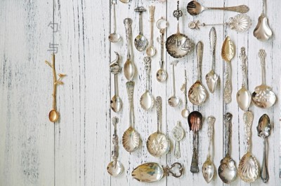 原来从事摄影的时候,就喜欢收藏各类相机,等到开始做勺子了,就又开始“收勺”,小五收藏的第一套勺子有些特别,在中国找到了同一系列中的7把勺子,又在日本找到了5把。12把古董勺本身小巧精致,上面有典型的文化标志和地理特征,虽然不知道这一套勺子本来应该有多少把,不过古董勺收藏,通常找不到两把相同的勺子,而这也拉开了小五的收藏“序幕”。“因为自己做这个,有点小心思,对它感兴趣,常常保留一套,或是研究它是怎么被做成的。收藏多了之后,会发现它和以前看到的餐具很不一样。”