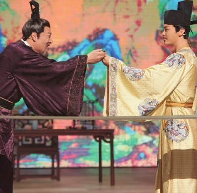 “前世故事的剧本其实很难写,”于蕾说,“很多文物的史料并不充足。我们希望小品可以深入浅出,雅俗共赏,所以在尽量尊重客观史实的基础上,给剧本做了适度的戏剧演绎。”比如第一期节目中的《千里江山图》,实际上关于它的研究,都来自于画中蔡京的那一段题跋。合理猜想、适度创作,并不容易。至于国宝和明星守护人的选择,也要力求“人剑合一”。确定了文物名录后,各个国宝就相当于被赋予了某种“性格”,选择的明星守护人就要和文物很“搭”才行,而不是谁有空、谁愿意来就行。例如,近几年以贤妻、女强人设定立足电视圈的刘涛演绎商王武丁之妻妇好这一中国历史上首位女军事统帅,还是相当合适的;又如,古装扮相比时装戏更显儒雅、惊艳的陈晓饰演宋代画家顾恺之,守护《洛神赋图》,也是令人信服的。