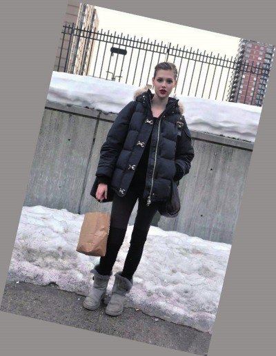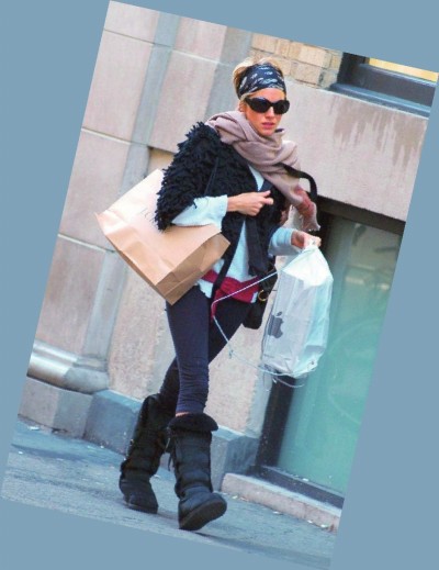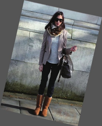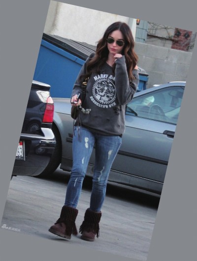 肥肥的雪地靴一定要搭配紧身裤,才显得下身不那么臃肿。