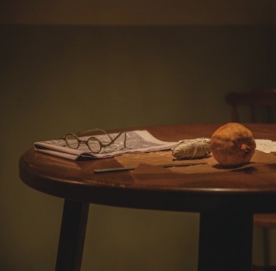 酒店内的光线和道具,铺设了缜密的细节,3000多个抽屉里都藏着与剧情有关的道具。走进麦克德夫夫人的房间,对应的房间内窗上映射了主人内心世界的倒影,真实世界里干净洁白的儿童床床单,在倒影镜像里却是血迹斑斑,恰如其分地呈现了女主人总是担心被迫害的惶恐。而类似线索,在近百个房间内千丝万缕,给观众留下了蛛丝马迹:打字机上未完待续的信笺、抽屉里有沙丘绿植还有水槽、从烟囱里倒流倾泻而入的黑沙、玻璃杯上残留的牛奶和草药、褶皱的床单和枕头里撕裂开来的成片羽毛,都在无声地诉说着剧情的起承转合,甚至于,就连看不见摸不着的温度也是被精心设计过的。这些叙事场景在5层楼的整个酒店里被无限放大。