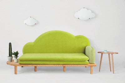 云坐,拥抱你的白日梦想。以每一个小家庭对于沙发“拥抱温暖感”的梦想为起点,设计一个如躺在云上的舒适坐感的沙发,取云的形状制成饱满柔和的靠背。