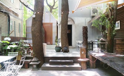 M-Space中的M,有Music(音乐)和Museum(美术馆)双重含义。这处秘密基地与杜月笙办公室旧址共享一块草坪,现属于东湖宾馆后院的一部分。M-Space本身也是一个院子,院中院建于小山坡上,惊喜之余忍不住多看几眼。这里有四处主要社交空间:白房子、黑房子、前院和后院,近百平米的前院拥有空间一半占地。满地的彩色落叶是大自然馈赠的庭院地毯,六十圈年轮的樟树只手遮天,是雨是晴都在头顶张开双臂。
