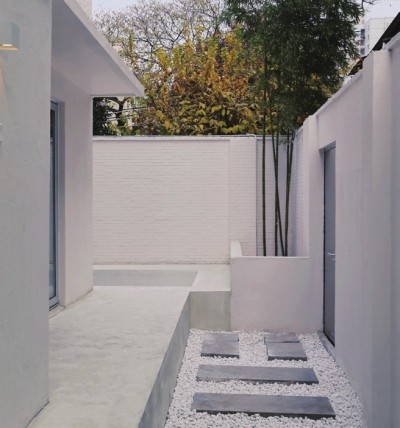 M-Space曾历经多次功能转型,自何勇接手运营,加入城市空间社交理念,经过改造后成功升级转型。黑房子前身是一家隐秘花店,庭院则是通往花店的公共走道,非营业时间庭院便漆黑一片,如今的夜晚迷人至极,明亮舒适的大庭院,既能容下20至30人鸡尾酒会,也不妨碍三五好友在樟树落叶角落窃窃私语。空间的社交操作开启后,庭院自然转换成黑、白房子的前厅,也就明亮了这间宅子。一个有生机的庭院最擅长带出人在空间来回游走的意愿。安静的朋友暂别户外,喜欢钻入黑房子把深入的话题推进这个私密空间;他们也爱白房子,把庭院的交谈声当作背景,躺在小房间,听树叶搔动白屋顶的沙沙声。爱热闹的朋友,黑房子能带你看一场投幕电影,进入一个自由重组的想象空间,闭上眼睛,已到达深不见底的脑内黑洞。