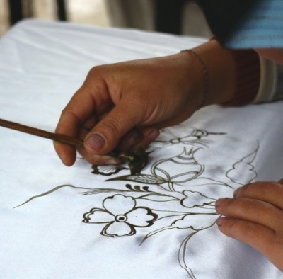 丝绸与所有的传统手工艺一样,如何在现代审美的语境下,得到保护与传承,成为了大家都在探索的话题。让更多年轻人喜欢并运用它,而不是只当作工艺品甚至是旅游纪念品存在,是成功的第一步。 贵州蜡染,如何与丝绸结合? “古代的染料主要是从中草药中提取出来,红色是从红花中提取,黄芪则可提供黄色染料。靛蓝是其中一种较为特别的颜色,贵州的蜡染常用靛蓝,而这种颜色也是从中药板蓝根中提取出来的。”遇见聂开伟的时候,他正在自己所主理的奕欧来丝情画奕工作室里指导大家如何做一条传统手工蜡染丝巾。曾在苏州丝绸博物馆潜心研究了整整八年古今丝绸的聂博士,现在在苏州大学纺织与服装工程学院的实验室进行丝绸色彩研究,与他聊起丝绸的话题,原本略显腼腆的他立即打开了话匣子。为了调研这种染料,聂开伟两次深入贵州苗寨,进行探访:“印象最深刻的是她们的淳朴。她们的蜡画并没有经过任何艺术培训,就是一代一代传承下来的,具有非常强烈的民族风格。我想,既然她们能把蜡画做到棉布上,那么,我也想把蜡染做到丝绸上。” 当地的蜡用的是蜂蜜蜡,染料也是通过植物自然发酵而成,因而,亲肤性非常好,自然又环保。配上她们自己织就的土布,刚刚好。用蜡刀点蜡的时候很顺畅,不会打滑,而丝绸面料因为太过于光滑,初期很难掌握勾线和造型。不过,有经验的染娘只需要试上两三次,便也可以上手了。 蜡染的第一步,先点蜡,用蜡画出图形。随后浸染,有蜡的地方自然不会被染上颜色,重复三至五次之后,染料就会紧紧吸附在布料上。最后的去蜡步骤,要用到70℃~80℃的热水,蜡遇水便会自然脱落,这样,一幅蜡染画就成型了:“染娘们的生活相对比较困难,但她们的精神非常愉悦,常常绣着绣着,就唱起歌来。而且她们对自己手工艺相当执着,并不会为了产量去赶制,几乎是没有功利心的,像艺术家一般去染她们的作品。” 受了这一次贵州之旅的启发,过了不多久,聂开伟自己又第二次前往苗寨,这一次他的初衷,是想将染娘们的手艺保存下来:“苗族姑娘出嫁时的服装,上面的蜡画、蜡染都是她们亲手做的。到了节日的时候,她们也会穿着盛装参加。但是,现在穿这些服装的通常都是年纪比较大的,年轻姑娘比较少。蜡染的市场非常有限,对商家来说,人力成本太高,所以旅游产品也更多选用机器化,这使得染娘对这门手艺更没有信心。我特地去跟当地的非遗办公室交流,希望她们能够继续自己的创作。我们也邀请了两位染娘到苏州和上海做宣传,让大众更加了解蜡画、蜡染是怎么回事。” 不过,要让蜡染真正“活”起来,更适合年轻化的需求,也需要作出一些改变,比如增加蜡画图案的趣味性和现代性,加入新的色彩和当下时尚的流行色相结合。聂开伟也坦言,这个改变的过程,亦有隐忧:“基本的手艺是不会变的。在现代审美的语境下,如果真正要传承保护下去,还是要运用到日常生活中,否则,它的传承空间是非常狭小的。但有一点担心的问题是,蜡染传统的图形是在染娘们的脑海里,比如大山里的植物、花鸟,还有对爱情的美好象征,如蝶恋花、锦鸡、凤凰等等。还有鱼,也是她们创作之中常常出现的图形,与她们的传统生活紧密相关。如果,我们要用自己设计的图形,久而久之,她们是否会将自己具有特色的图案忘记,不得而知。” 丝绸的新流行色,怎么预测? 这几年来,聂开伟还在持续做一项有趣的实验——用脑电波实验预测新一年的色彩流行趋势:“这是近几年的研究项目。用医学上的脑电仪测试消费者,尤其女性,因为她们对色彩的敏感度更强,而且也是丝绸消费的主要群体。” 接受测试的女性主要集中在二十至三十岁,被实验者会看到一种或一组颜色,而她们对色彩的喜好程度,则会真实地通过脑电波的波动幅度反映出来:“如果感觉比较显著,脑电波的波动幅度就会比较大。以此类推,根据众多的实验数据进行分析,并与2017年的流行色进行对比,就能得出最后的结论。”截至目前,黄色系列和雾霾蓝是被测试女性们更为青睐的颜色。 这一项研究的最终结果,会被运用在丝绸作品的开发上。实际上,聂开伟虽然经营着一个有关于丝绸文化和体验的品牌,但他对丝绸衍生性的研究,却从来没有停止过:“我从事丝绸相关的工作已经有十年的时间。前五年,研究古丝绸,包括服装和色彩。后五年,改为研究现代这一块。现在,丝绸市场上出现的产品,都过于传统,在江南这一块,丝绸甚至已经低端到被用来遮挡阳光。这种状态特别泛滥,市场很乱,在这样的背景下,要去创新,就很困难。” 大约五六年前,聂开伟还在专业的博物馆从事关于古丝绸的研究工作。接触了很多古丝绸的藏品,包括出土的文物和故宫的收藏,亲眼见过、接触过,就会感到古丝绸本身是非常高雅的丝织品,无论是工艺、用料、款式,还是色彩系统、成衣状态,整个制作过程的要求极高。他所收藏的五百多件老服饰,从清代服饰,到20世纪初期的旗袍。其中一件女子婚服,纯手工绣花,银丝垂饰,从中能够感受到手艺人的沉着、冷静,只有达到最好的状态,才能做出最好的服饰:“比如,距今两千多年的汉代丝绸,出土以后,色彩依然非常漂亮。过去常用植物染色,也称草木染,即使出土之后有些氧化、变暗,颜色本身依然非常沉稳。古代的色彩系统非常丰富,除了有分男女色之外,每一个时代的色彩系统也不一样。