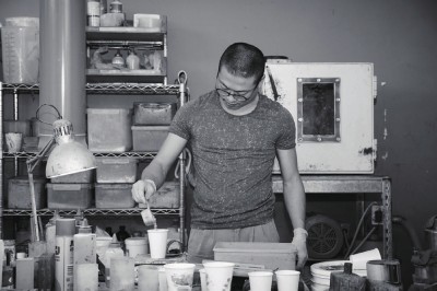 随着设计不断成熟,二十二设计的品类也越来越得到认可。以当时一个月只能手工制作三四件成品的情况,显然供不应求,因此,产量又成了新的问题。游声尧找了很多代工工厂,但都不尽如人意,无法达到他想要的技术要求。于是,他就干脆自己招兵买马,组建一个小型的水泥产品工厂。最初的“夫妻店”壮大到了如今13人的设计团队,其中,有6人就是专门做水泥产品制造的。除了自己制造生产,技术已经发展到一定程度的他们,如今甚至还要帮一些客户做水泥产品代工。