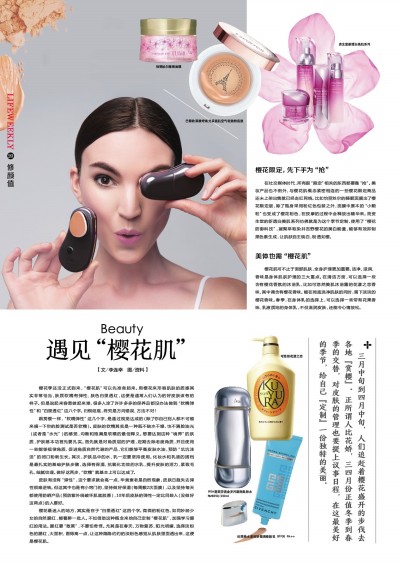 三月中旬到四月中旬,人们追赶着樱花盛开的步伐去各地“赏樱”。正所谓人比花娇,三四月份正值冬季到春季的交替,对皮肤的管理也要提上议事日程,在这最美好的季节,给自己“定制”一份独特的美丽。 樱花季还没正式到来,“樱花肌”可以先准备起来。用樱花来形容肌肤的质感其实非常恰当,肤质软糯有弹性、肤色白里透红,这便是通常人们认为的好皮肤该有的样子。但是说起来容易做起来难,很多人涂了许许多多的保养品都没办法做到“软糯弹性”和“白里透红”这八个字。归根结底,终究是方向错误、方法不对! 跟赏樱一样,“软糯弹性”这几个字,是通过视觉达成的(除了你自己别人都不可能来摸一下你的脸测试是否软糯)。皮肤的软糯其实是一种既不缺水干燥,也不满脸油光(或者是“水光”)的感觉,均衡和饱满是软糯的最佳释义。想要达到这种“境界”的肤质,护肤基本功首先要扎实。首先就是对角质层的护理,定期去除老废角质,并且使用一些能够规律角质、促进角质自然代谢的产品,它们能够平衡皮肤水油,预防“坑坑洼洼”的闭口粉刺生长。其次,护肤品中的水、乳一定要坚持使用。化妆水和乳液的搭档是最扎实的基础护肤步骤,选择有保湿、抗氧化功效的水乳,提升皮肤的活力,紧致毛孔,细腻纹理。做好这两步,“软糯”就基本上可以达成了。 皮肤有没有“弹性”,这个要求就会高一点,毕竟衰老是自然现象,皮肤日趋失去弹性很难逆转。但这其中也是有小窍门的,坚持做好保湿(每周敷2次面膜),以及坚持每天都使用防晒产品(预防紫外线破坏肌底胶原),10年后皮肤的弹性一定比同龄人(没做好这两点)的人要好。 樱花最迷人的地方,其实是在于“白里透红”这四个字。微微的粉红色,如同妙龄少女的自然腮红,能看醉一批人。不如借助这种概念来给自己定制“樱花肌”,加强学习腮红的用法。 腮红要“敢画”,不要怕奇怪。尤其是在春天,万物复苏、阳光明媚,选择淡粉色的腮红,大面积、画得高一点,让这种隐隐约约的淡粉色感觉从肌肤里面透出来,这便是樱花肌。 樱花限定,先下手为“抢” 在社交媒体时代,所有跟“限定”相关的东西都要靠“抢”。美妆产品也不例外,与樱花肌概念紧密相连的一些樱花限定商品还未上架出售就已经走红网络。比如怡丽丝尔的睡眠面膜出了樱花限定版,除了瓶身采用粉红色包装之外,面膜中原本的“小颗粒”也变成了樱花粉色,在按摩的过程中会释放出精华来。而资生堂的新透白美肌系列仿佛就是为这个季节定制,使用了“樱花防御科技”,凝聚萃取染井吉野樱花的美白能量,能够有效抑制黑色素生成,让肌肤自主焕白,粉透如樱。 美体也需“樱花肌” 樱花肌可不止于面部肌肤,全身护理更加重要。洁净、滋润、香味是身体肌肤护理的三大重点。在清洁方面,可以选择一些含有樱花香氛的沐浴乳,比如可悠然美肌沐浴露的花漾之恋香味,其中调含有樱花香味。能在彻底洗净肌肤的同时,留下淡淡的樱花香味。春季,在身体乳的选择上,可以选择一些带有花果香味、乳液质地的身体乳,不但滋润皮肤,还能令心情放松。
