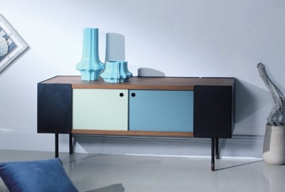 这个光滑的柜子可以摆放在居室里,作为电视柜来呈现你家中巨大的电视屏幕;也可以摆放在厨房里作为餐具柜或储物柜。金属边和滑动的彩色金属门为这个矮柜带来了摩登感。