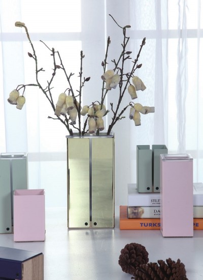 这款花瓶将使你的桌面变得有型有色,是一个具有现代风格的储物容器。在金属瓶身内置有玻璃花瓶,你可以放花束;在金属瓶身下是木制底座,让你端起它时不会太冰冷。