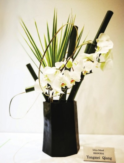作为日本一叶式生花学校讲师、国际花道协会上海支部第二支部长,强咏梅研习一叶式生花已经有五六年时间。一叶式生花于1937年由粕谷一叶和粕谷明光姐弟创立于日本东京,在传承传统花道精华的基础上,建立了简洁易懂、系统完善的现代花道教学方法,包括盛花、投入花和自由花。