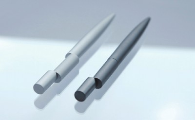这款笔的视觉重点是一截错位的笔身。设计师从心理学原理获得灵感,发现人们习惯将事物“对齐”,借此诱导使用者去将错位的笔身对齐,同时滑出笔芯,开启书写功能。