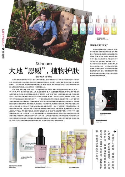 来源于大地的“植物”往往给人更天然、更美好的感觉,人们由衷地相信,取自天然的植物能量是大地“恩赐”的美丽。植物系护肤,恐怕可以再火五十年吧! 化妆品里使用“植物成分”早已不是什么稀奇的事情了。虽然“植物成分”与“化学成分”没有任何好与不好的可比性,也没有任何现代化妆品是由百分百的天然植物成分所构成的。但来源于大地的“植物”往往给人更天然、更美好的感觉,人们由衷地相信,取自天然的植物能量是大地“恩赐”的美丽。而化妆品的研发人员,也乐于在出售产品的同时,出售如此美好的概念。毕竟,还有另外一种美丽源自内心。 芦荟、柠檬、苹果、海藻、绿茶、石斛……这些植物是如何成为大地“恩赐”给人们的美丽的呢?离不开“科技”二字!从采摘、萃取、配方到产品的包装、上市,是用植物的根、茎、叶,还是用植物果实的皮、种子?全都仰仗现代化妆品研发科技。可以说,如今市面上的化妆品,不管所谓的“大牌”还是“小牌”,在运用植物成分方面,可以说是得心应手。在今年丝芙兰春夏新品预览的三十几个化妆品品牌里,就看到了不少让人一见就“充满活力”的产品。比如SEPHORA选取了倍加浓缩自然精华的种子——柠檬籽呈现肌肤自然纯净的奥秘,低温超声萃取,小小柠檬籽可完全发挥天然亮肤因子丰富的活性,完美提亮肤色。ALGENIST奥杰尼独家揭示微藻细胞新生的神奇力量,利用多糖酸独家专利,打破美的界限,多效修护肌肤,改善黯沉,10天肉眼可鉴。来源自然、回归自然,“天然护肤”概念火了十几年,未来护肤趋势,仍旧离不开它。像WEI蔚蓝之美的金钗石斛系列一样来个“中西合璧”的品牌是聪明的,不但将珍贵中草药成分融入现代配方科技,以金钗石斛提取物结合其他如当归、北美金缕梅、海藻等有效成分;更在产品包装上下了工夫,采用传统手工包装、辅以印章贴纸的方法,将“汉方”概念发挥到了极致。LUMINGTANG露茗堂演绎的是另外一种“中西合璧”——以茶的神奇能量为本,利用尖端生物科学,封存生物活性营养物质的同时释放净化能量,帮助都市人重焕肌肤活力与光采。如今许多人们耳熟能详的化妆品大牌都来自法国,专注植物成分研究的巴黎品牌NUXE欧树致力于把植物的卓越能量释放在肌肤,结合植物成分、科学方法与感官享受,释放自然美丽。UNITOUCH优莉缇选择最沉静而有力的天然花水,开启零添加与都市丛林的自然对话。 定制美妆新“玩法” 化妆品世界中真的存在“定制护肤”吗?有的,但很复杂,据说有品牌可以通过采集角质,分析皮肤状况,根据个人独特的肌肤状况定制出“专属”产品来。但那么复杂的流程似乎并不适合大众消费市场,护肤品牌SKIN INC思琦莹的“随心调配”看起来更“好玩”一些。你也可以成为“配方师”,把维生素C、辅酶Q10、维生素E等近十种不同功效的精华随心调配,不用担心配错,因为所有的可能性都在品牌的“计算”之内,相互调配的不同的主要成分被包裹在微胶囊中,而每一瓶产品中的其他成分基本都是相同的。