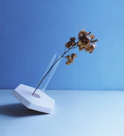 家里的花大多数都被安放在花瓶里面,花瓶里的花大多数是倾斜着的,而大多数的花瓶是直立的。用一个支点,也许就能给出另一种选择:花原本是直立的,花器却不安分地倾斜了。六条边界,给了花六个不同方向的自由,自由去选择是靠向你,还是那边的他(她)?