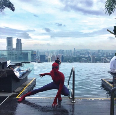 虽然我一直称自己是时髦星人,但面对早有耳闻的滨海湾金沙无边泳池,嘴上号称不在乎,还是不能免俗地早上七点起床去抢拍照的best spot,但是,依旧全是人,连蜘蛛侠都来了。