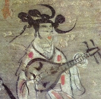 •魏晋:妆饰文化呈现出一派求新求异,充满自由想象的崭新景象。在女子面妆方面,魏晋南北朝创造了一系列前所未有的新奇名目。如“斜红妆”“额黄妆”“寿阳妆”“碎妆”“紫妆”“黄眉墨妆”“徐妃半面妆”等,大多形象古怪,立意稀奇。其中“额黄妆”与发式中的“螺髻”与“飞天髻”,充满了浓郁的异域风情。