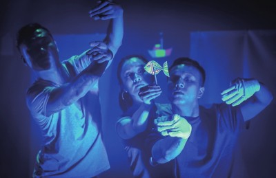 没有台词,没有故事,没有情节,你可以将它看作是一首诗、一幅画、一段舞,也可以是一个海洋味道的美梦…… 在距离我们似近似远的地方,有一片蔚蓝辽阔的海洋。手变成了小螃蟹,在沙滩上横行漫步;一束光照进海里,一条小鱼正追着光游来游去;用黑色垃圾袋和塑料桶做的鲨鱼,暗藏在深海里逡巡,伺机捕猎……多媒体形体剧《海》的舞台上只有三个演员,他们不断变换着肢体语言,让你通过皮影小鱼的视角来看海底的一切,小鱼从一个二维的世界来到一个三维的世界,静静地看着这一切,遇见螃蟹,遇见鱼群,遇见水草,遇见鲸鲨,遇见自己,忘记了时间,忘记了空间,忘记了一切……6月8日至18日,上海新天地的石库门街区、太平湖畔和街头巷尾迎来了第三届“表演艺术新天地”艺术节,如果你在此期间,走进屋里厢博物馆,很有可能就会邂逅这部别出心裁的《海》。 用肢体戏剧为海洋发声 刘晓邑、金曾、小雄,是“鲸鱼创艺”的核心创作者,三人都是学舞蹈出身。但毕业之后,他们却选择了“做戏剧”这条看似风马牛不相及的道路。说起刘晓邑,其实,很多人对其“《战马》中文版木偶导演”的身份更为熟悉一些。2014年,刘晓邑、金曾和小雄全部通过了《战马》中文版的演员选拔,刘晓邑更是成为《战马》中文版的木偶导演。为了更好地完成作品,刘晓邑专门赴英国学习了半年的时间。《战马》火了,刘晓邑和他的团队也收获了更多的认可。于是,他们用在《战马》中学到的欧洲木偶表演的观念和技术,不断尝试和探索原创剧目。 2015年,剧组里的大多数人开始学习潜水,只要一有假期,大家都会结伴一起前往菲律宾潜水。一次次的潜水过程中他们目睹了海洋一年年的恶化、海底生物的日渐消亡。“我们经常去菲律宾的薄荷岛,那里有个潜水点叫巴里卡萨,六年前我刚去的时候,那里的珊瑚特别地美,绿蓝黄红,特别色彩斑斓。前几年开始,却慢慢看着它们变成了白色,直到现在它们已经瘫倒在地,死了一大片。”《海》的导演刘晓邑谈起自己在海里亲眼所见的一些变化,让人触目惊心。 由于全球气候变暖,海水平均温度升高,珊瑚出现了白化和大面积死亡;由于鱼翅交易和大面积捕杀鲨鱼,海里的食物链被破坏……“可能很多人不清楚,珊瑚的死亡对于人类来说,是一件特别可怕的事情。三十年前,大规模的珊瑚白化现象比较罕见,但近年来却越来越多地出现,说明自然环境的破坏日益严重。”因此,这群热血的戏剧人就决定筹备一部作品,想把每次潜水所看到的海底生态环境和被破坏的状况展现出来,为美丽的大海发声。 让戏剧返璞归真 从最初的创意到下海拍摄,从零散的素材到编排成型,主创团队花费了近三年的时间。在酝酿这部作品的过程中,他们还专门为作品中需要用到的海底真实照片、视频,特意下海潜水近50次,带回了1800多张照片和超过2000分钟的录像资料,刘晓邑还自己剪出了一部公益纪录片。 所以,在创作《海》的时候,团队决定就干脆做成连演出带影展的模式。“我们在演出现场布置了一个小的展厅,观众可以拿着手电筒,进入到一个暗室里,通过手电筒的光线来欣赏照片展。”刘晓邑解释,这么做是想还原夜潜的感觉,“我觉得,在海底夜潜的时候是最美的。如果你白天在海底潜水看到的颜色是不真实的,它会最先把红色过滤掉,它的颜色就不够真实,而晚上去潜水特别有意思,你打灯,海底的光就会折射出来,直射到某个生物上,它的颜色才是真实的,特别漂亮。”所以,《海》的舞台灯光也大量采用了强光手电筒,就是为了营造身处海底的氛围。 《海》的道具也很特别,洗衣机的管子、电焊手套、油漆刷……很多剧中道具都是就地取材:“我的工作室里有一个大箱子,都是我平时收集的一些,我觉得有意思的小垃圾,然后我想做什么东西,就从里面找,看能做出什么样的好东西。没什么特别奇怪的小物件,都是非常日常的,但做成道具使用会让你意想不到,也会用在特别意想不到的地方。” 因为没有台词和剧情,剧目之间的关联性需要观众自己去发现,这是刘晓邑刻意所为的,他希望观众在看的同时,能跟他们一起思考。刘晓邑说,之所以不想给观众呈现太故事性的内容,因为怕打断观众对海底空间的想象。“海底它就是神秘的、未知的,我们对海洋的了解太少了。所以,我们的整个呈现是比较神秘和未知的,观众看的时候,他能想到什么就是什么,我们是想要观众自己去感觉,而不是我告诉你这是一条鱼,那是什么,当然我们也有告诉他们的东西,但是更多的时候,他会自己去发现,这是一种感性的氛围熏陶,它不是像数学题一样有绝对答案。” 全剧基本上是按节奏和段落来分为“微观海底”、“沙泪”、“浮游世界”、“诗意海洋”以及海洋公益宣传短片五个部分。“微观海底”表现的都是海底一些特别有意思的小局部,就像你从显微镜下或者特写镜头里看到的画面,将其呈现出来;“沙泪”则是特别悲伤也是能量特别大的一段,当海底只剩下小鱼和沙子,三位演员仅凭肢体和沙子的互动,就让不少观众看得泪目;第三部分“浮游世界”,用生活垃圾做了一条大鲸鲨,专门吃浮游生物,影射了海底垃圾对海洋的危害;“诗意海洋”,以朗诵泰戈尔的诗作《海边》来结束整个段落的演出,这首诗中写到了寻找宝藏的采珠人、在船上航行的商人,他们都是大海的一份子。而诗中所说,真正与大