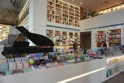 楼梯二楼阅读区和活动区提供了纵向连接。环顾四周,墙壁上排列着通高的书架,犹如一条条在整体空间中不间断循环的缎带,将不同的功能空间彼此区分或联系起来,引导顾客完成一场充满变化的书店之旅。空间中除双层高的中庭、活动空间和儿童区外,还包含果汁吧、咖啡厅以及钢琴舞台。运用连贯性的设计及材质衔接,使建筑整体巧妙地保持了连贯和统一。