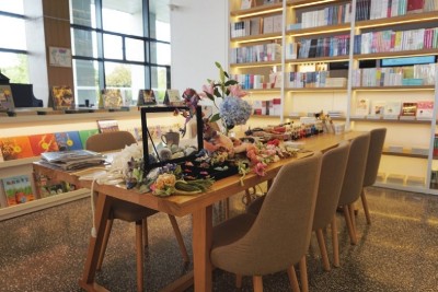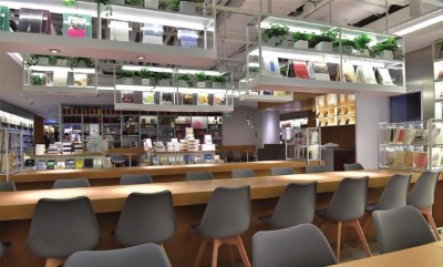 这家书店的总面积为1300平米,在大型阶梯的四周分布着三分茶(TEA&COFFEE)、书籍(BOOKS)、一人食(GOURMET)、大音坊(RECORDING)、美学屋(LIFESTYLE)、绿雪芽(LETSH EER TEA)等功能区域。阶梯一二层楼的空间区隔,运用木色和灰色的撞色,不仅减缓了楼梯长度太长的视觉感受,同时区分了过道和造型的分隔。这已然不是一个纯粹的上下通道,拾级而上,立式书柜仿佛楼梯扶手,每一步都伴着书香。当你有所发现想仔细探究,便可轻松拿取书籍。落座于任何一级台阶,身边有郁郁葱葱的绿植,不远处还飘来咖啡香,这些体验都能帮你调慢钟表,尽享与书共舞的片刻。