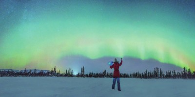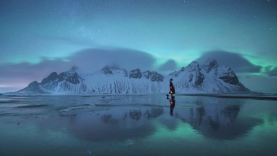 只是,拍多了星空之后,闷闷儿也发现,这片看似无言的天际,却会讲故事。像是那一年的英仙座流星雨,倒映在茶卡盐湖,两人携手而过,不置一言,却是浪漫的滋味;像是那一年俄罗斯的极光,画面中央的姑娘,站在白皑皑的雪地里眺望,穿越在真实和虚幻之间;像是星空下的那一个火把,烟气顺着火苗向上蹿,零星的火点形成无数光圈,恍惚之间,是人片刻的“离魂”;又像是广阔天空下的灯火缥缈,一袭红衣提灯,不知多少夜归人。
