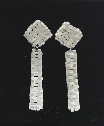 这也是两组纯银编织而成的耳环。与上一系列不同,这两组耳环在颜色、形状上都更加整齐有序,但也少了某种独特性。这也是银与铜作为原材料时的差别。